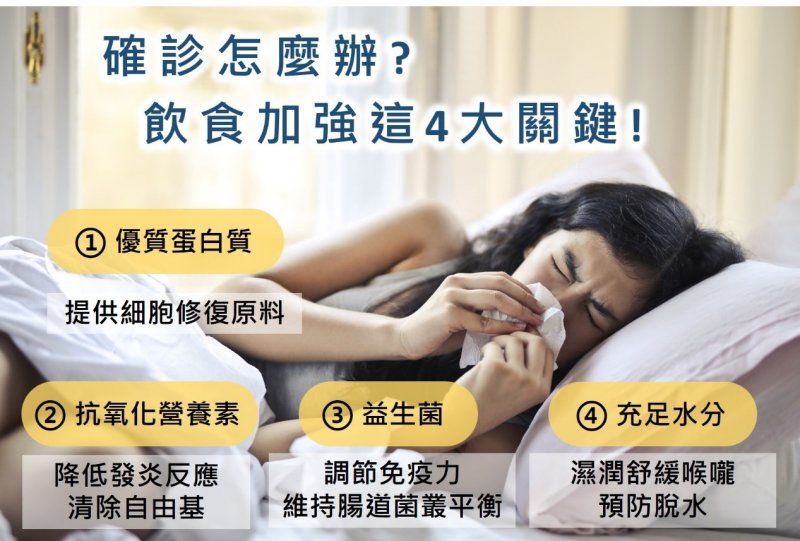 若真的不小心感染,也別過度緊張,依照醫師指示的藥物緩解症狀,更要讓自己吃飽、補充足夠營養、一定要多休息,才能讓身體的免疫力強健消滅病毒,加速痊癒的速度!