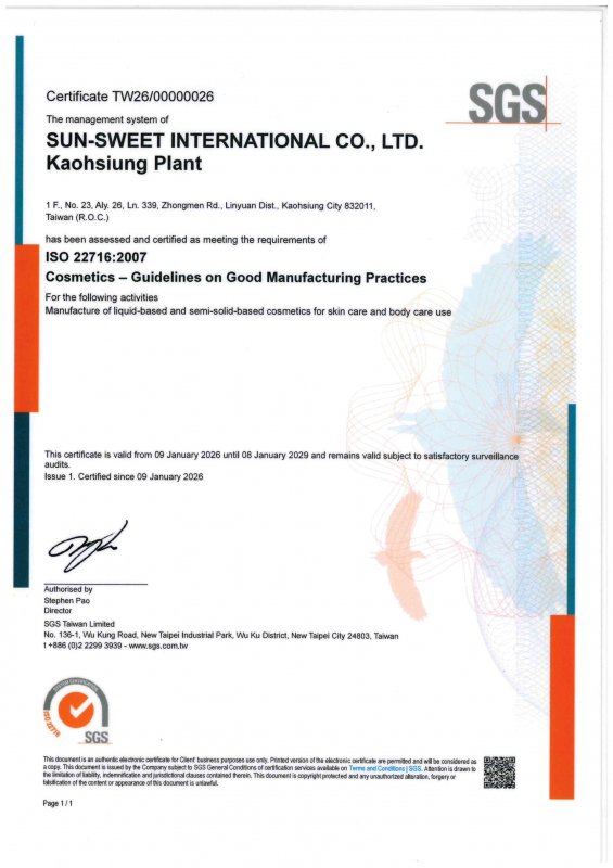 無數個日子,在公司與工廠之間來回奔波,勝葳特高雄廠,今年正式通過衛福部食藥署核准的化妝品優良製造準則 ISO 22716 工廠認證。